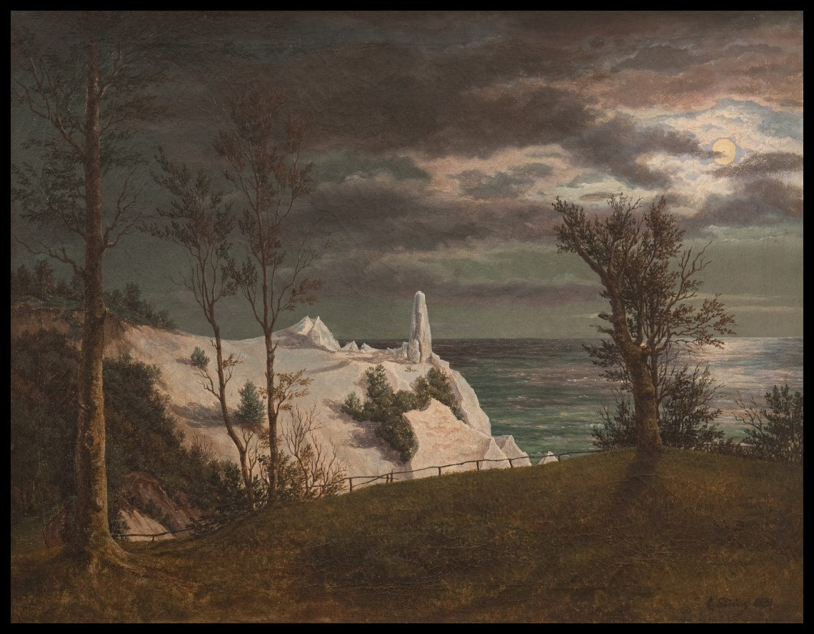 The Summer Spire on the Chalk Cliffs of the Island Møn. Moonlight