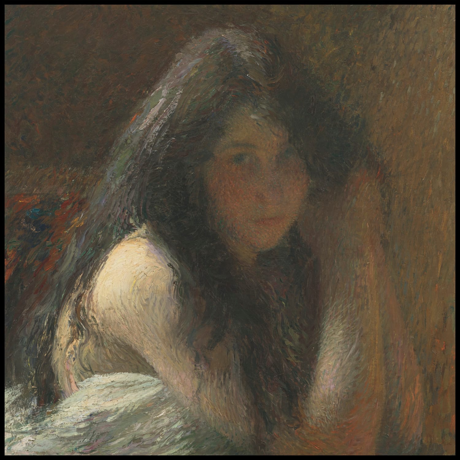 Jeune femme se coiffant