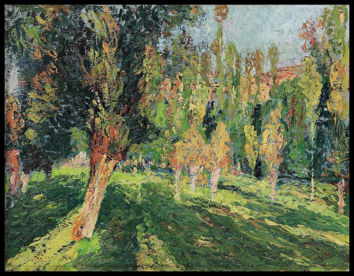 Saules et peupliers dans une prairie