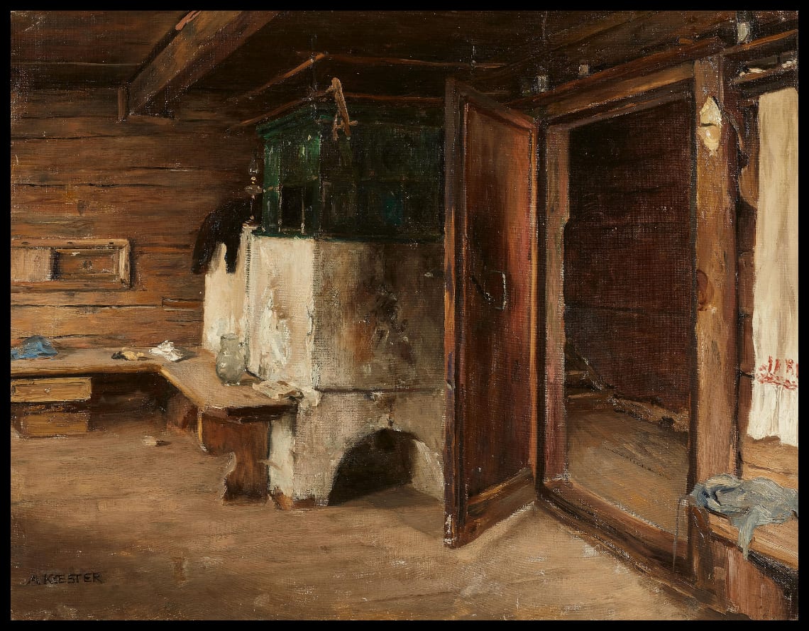 Bauernstube mit grünem Ofen