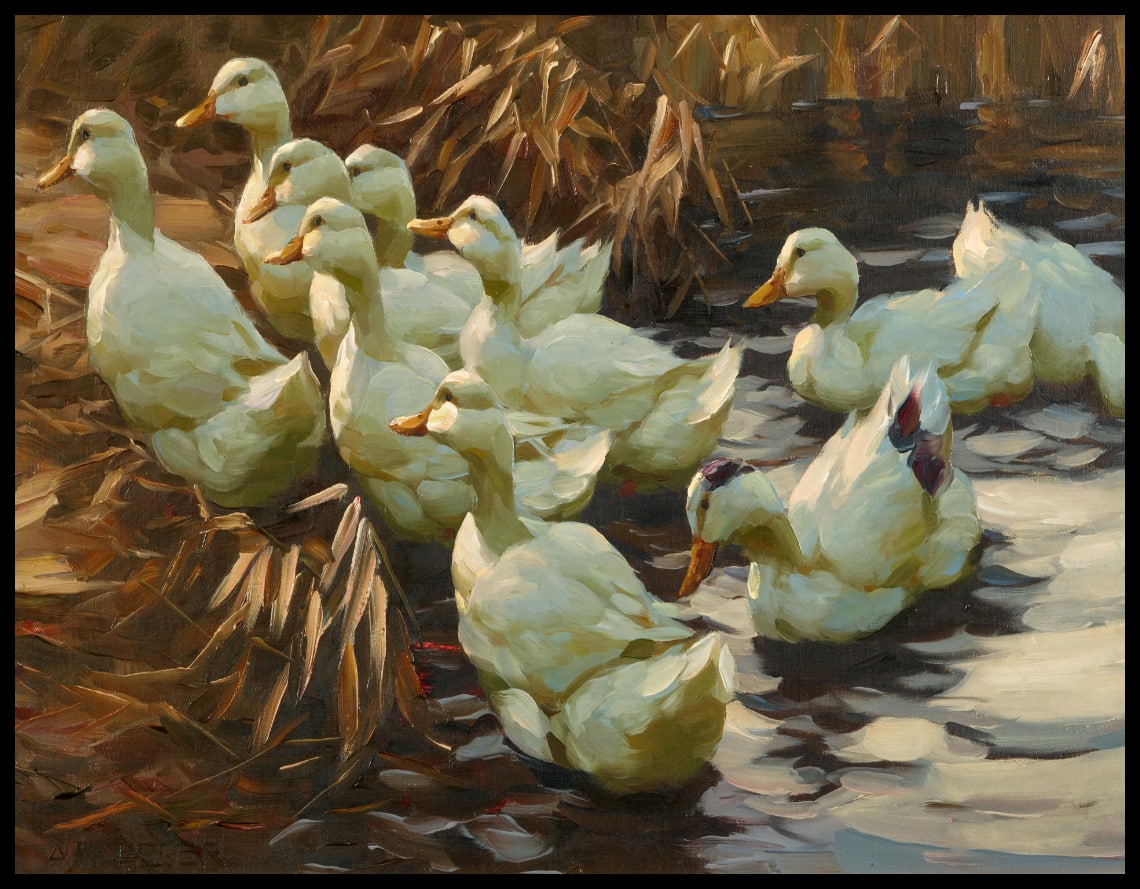 Enten aus dem Wasser gehend