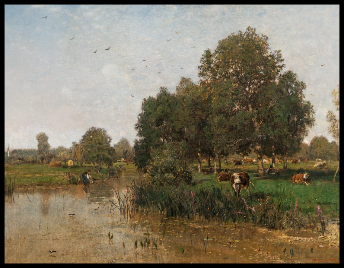 Flusslandschaft mit ruhender Herde