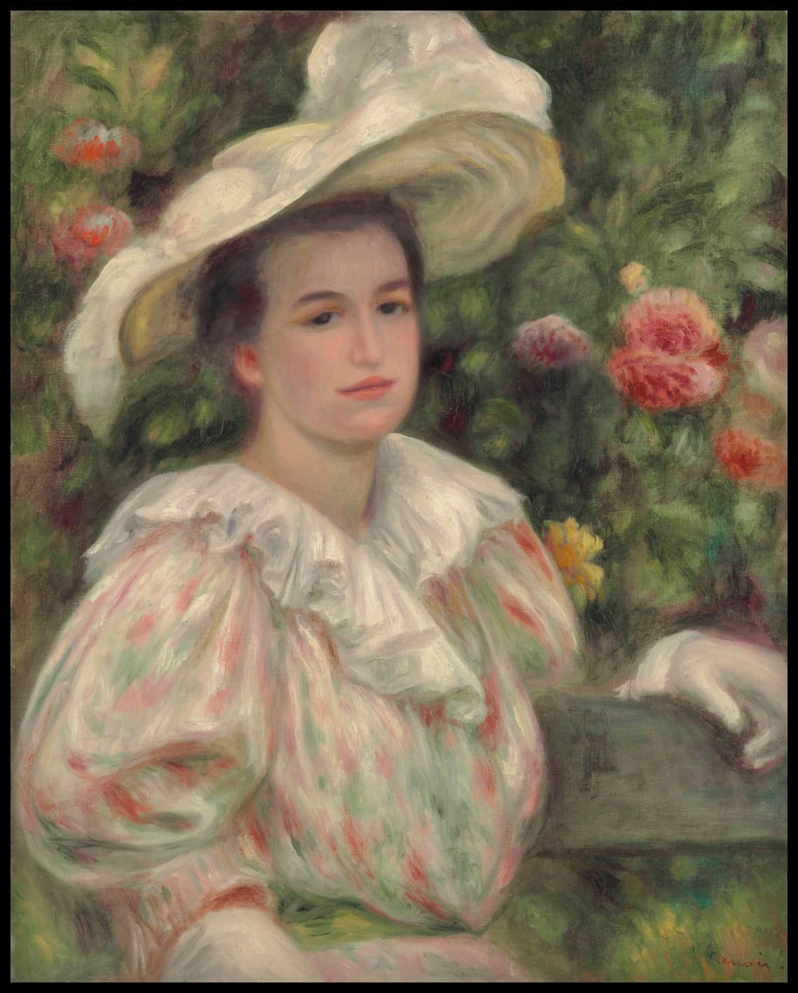 Jeune fille dans les fleurs or Femme au chapeau blanc