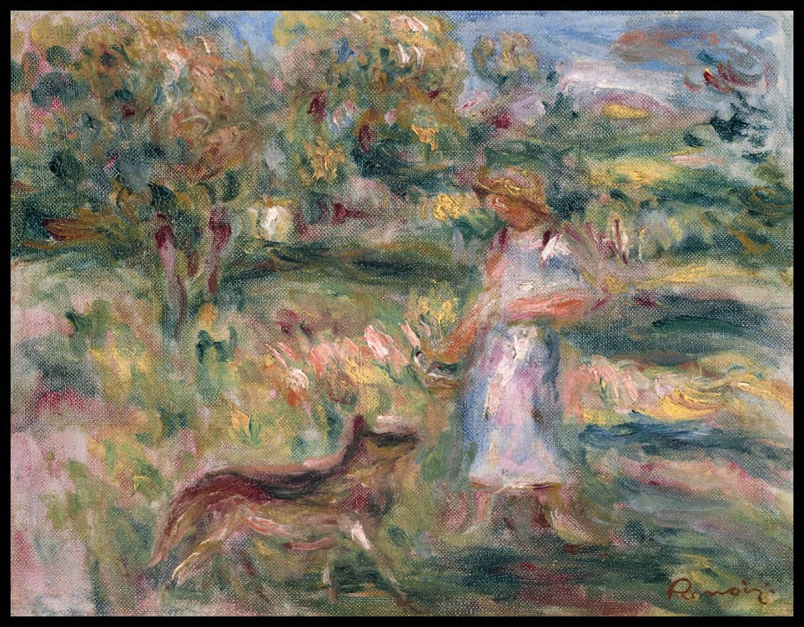 Paysage avec femme en bleu et Zaza à Cagnes